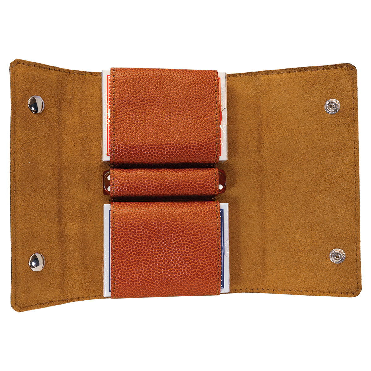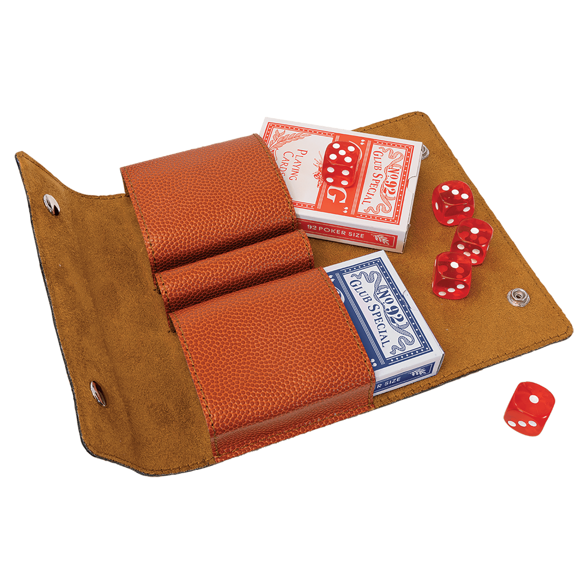 Designed for versatility, the set includes a deck of cards and five dice, all neatly encased in the laserable leatherette holder. The laserable material allows for personalization, making it an excellent gift for basketball lovers or a stylish addition to your own collection.